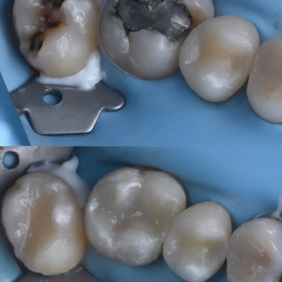 Before treatment, your tooth may appear cracked or decayed. After placement, it looks smooth, strong, and natural again.